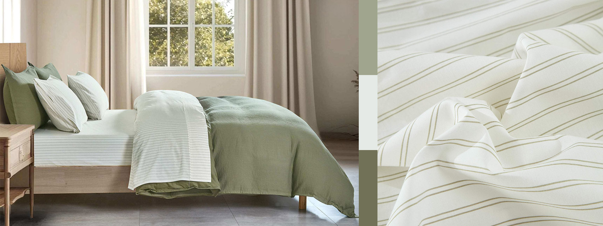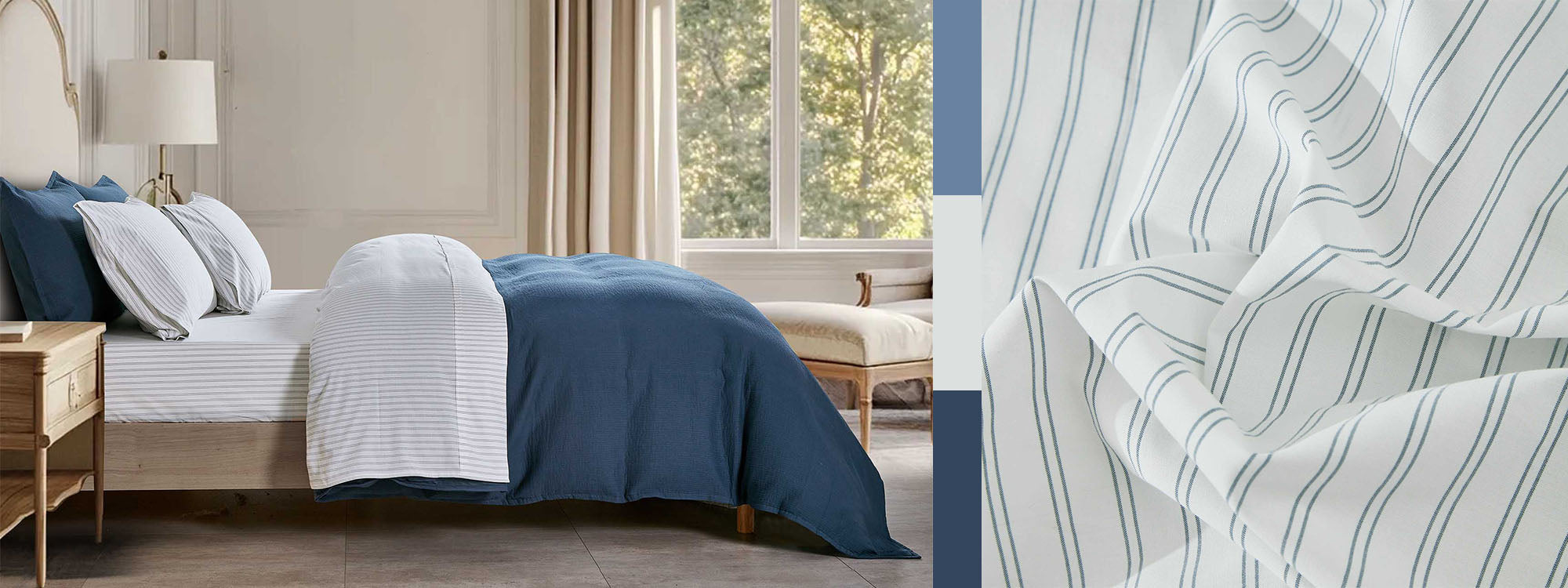 Our flat sheets and pillowcase sets are finished with a classic hem stitch, adding clean and interesting details. Additionally, our duvet covers come complete with our 4-corner ties, matching the 4-corner loops on our duvets, keeping everything in place.